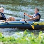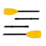 A műanyag összecsukható evezők felfújható csónakokhoz, matracokhoz és egyéb vízi járművekhez készültek. Pontosabban két részből álló műanyag nyéllel és műanyag lapáttal rendelkeznek. Az evezők egyes részei stabilan, csavarozással kapcsolhatók össze. A csomagban található biztosítógyűrűknek köszönhetően az evezők biztonságosan rögzíthetők.