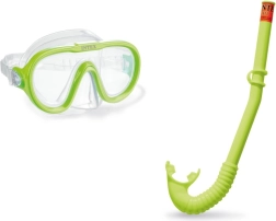 Az INTEX Aqua Flow gyermek úszókészlet kényelmes maszkot biztonságos, polikarbonát lencsékkel és sznorkelt különösen komfortos szájrésszel kombinál. Kezdő kis úszóknak és sznorkelezőknek ideális, kényelmes illeszkedést, UV-védelmet és párásodásgátlást kínál, nagyjából 8 éves kortól ajánlott.