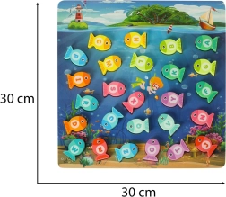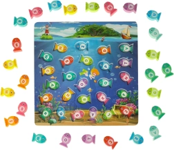 Csatlakozzon a varázslatos víz alatti világhoz és tapasztalja meg a végtelen szórakozást a fa halászó játék segítségével. Ez a oktató játék segít a gyerekeknek megtanulni a betűket, színeket és számolást. Az egyes betűkkel jelölt halacskák a megfelelő lyukakba kell kerüljenek, és mágneses horgászbottal is lehet őket fogni. Az egész folyamat segít fejleszteni a koncentrációt és türelmet.