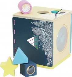 A gyerekek különböző formákat helyezhetnek megfelelő nyílásokba, ami fejleszti a finom motorikus készségeiket és térbeli orientációjukat.