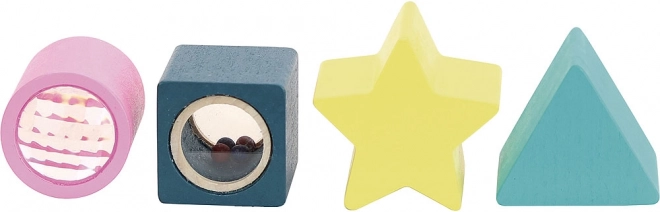 A hangkocka és a kaleidoszkóp henger felkelti a gyermekek figyelmét és ösztönzi az érzékszervi felfedezéseket.