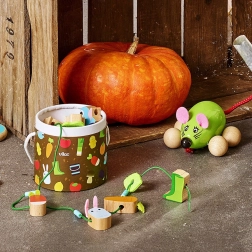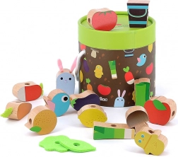 Ez a kerti témájú fa fűzős játék változatos formákat és színeket kínál, amelyeket a gyerekek imádni fognak. A biztonságos, simára csiszolt elemeknek köszönhetően a kicsik gyakorolhatják a felfűzést, válogatást és a farmhoz kapcsolódó tárgyak megnevezését. A kompakt csomagolás ideális utazáshoz és az otthoni, rendezett játékhoz is.