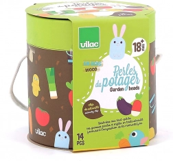 A 14 illusztrált gyöngy (pl. padlizsán, paradicsom, madárka, gumicsizma) támogatja a fantáziát, a színek tanulását és a megnevezést.