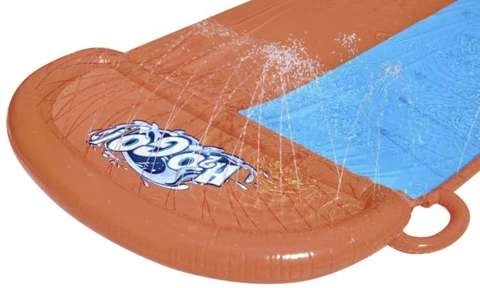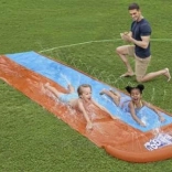 Ez a hosszú kerti vízi csúszda két párhuzamos pályát kínál versengő futamokhoz gyerekeknek és felnőtteknek egyaránt. Az oldalsó vízsugarak kaszkádja folyamatosan nedvesen tartja a felületet, így a csúszás gyors, egyenletes és üdítő még a legmelegebb napokon is.