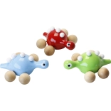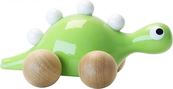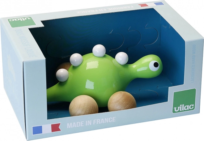 Élvezze a szórakozást a Vilac fa dinoszaurusszal kerekeken. Ez az aranyos dinoszaurusz zöldre festett, és fehér kiemelésekkel van díszítve a hátán. A fa kerekeknek köszönhetően kis felfedezője könnyedén közlekedhet a dinoszaurusszal a házon belül vagy kívül.
