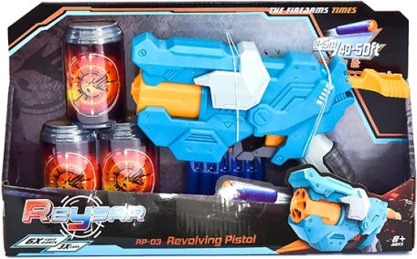 A csomag része három műanyag doboz, amelyek célpontként szolgálnak a célzás gyakorlásához, valamint hat puha habszivacs lőszer a biztonságos játékhoz. Tökéletes választás otthoni pontossági versenyekhez és akciódús párbajokhoz a barátokkal.