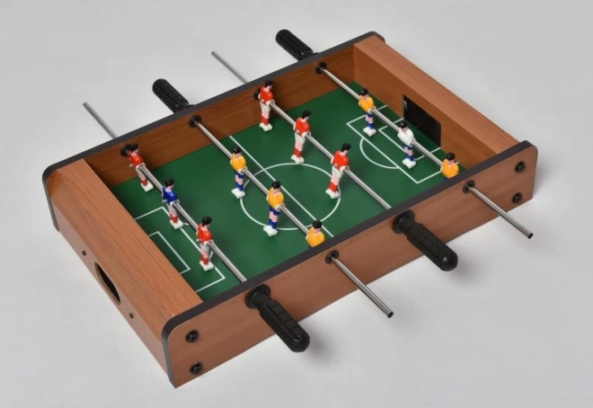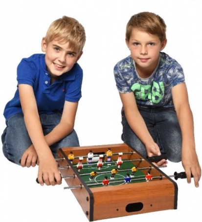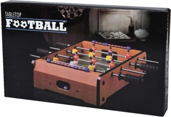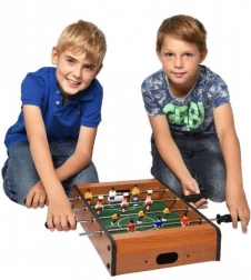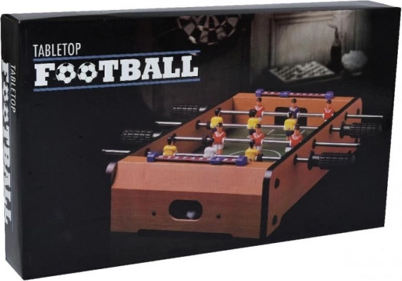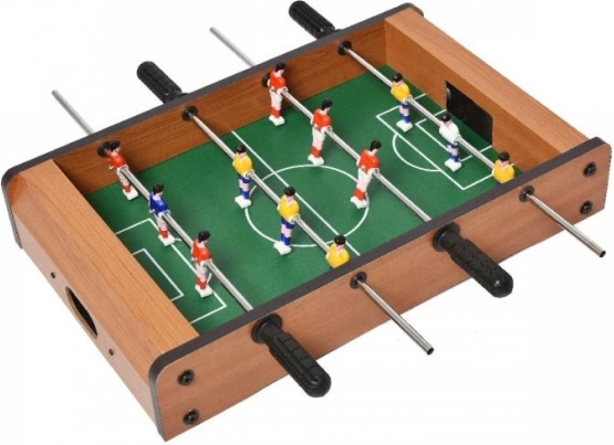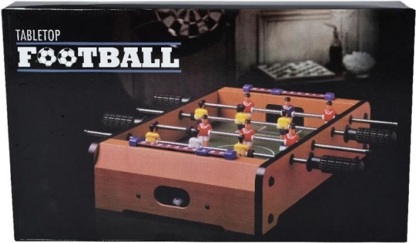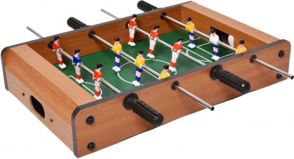 Ez a kisebb asztali foci ideális választás minden futballrajongónak, aki otthon is szeretne szórakozni. Színes, lakkozott fából készült, ami hosszú élettartamot garantál. Minden csapat 6 játékossal rendelkezik két rúdon, így a kezelés egyszerű, és a játék valósághű mérkőzést idéz.