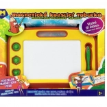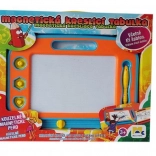 A mágneses rajztábla ideális választás a kis művészeknek otthon és útközben. A varázslatos mágneses tollnak és a három pecsétnek köszönhetően a gyerekek órákon át alkothatnak papír és ceruza nélkül. A törlősín egyetlen elhúzásával a rajz eltűnik, és a felület készen áll a következő műre.