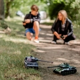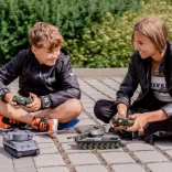 A két tank egyidejű irányítása jelátfedés nélkül. Folyamatos karos vezérlés előre/hátra és pontos helyben fordulás.