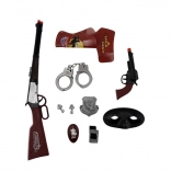 Változtasd a gyerekszobát vadnyugati prérivé! Ez a játék-készlet mindent tartalmaz a kalandos jelenetekhez – a „seriff” bilincstől a „coltig”, amely teljessé teszi a jelmezt és beindítja a fantáziát. A könnyű, könnyen kezelhető kiegészítők gyerekkezekhez lettek tervezve.