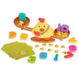 A dobozban megtalálható a bagoly mérleg, 19 kis bagoly, 10 műanyag számjegy és 30 feladatkártya. A változatos játékmódok fenntartják a gyerekek figyelmét, és támogatják a kreativitást és az önálló felfedezést.