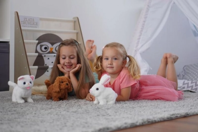 Bekapcsolás után a kutyus jár, ugat és csóválja a farkát – támogatja az interaktív játékot és a gyermeki fantáziát.