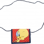 Aranyos gyermek pénztárca Tweety és Szilveszter motívummal a LOONEY TUNES-ból, ideális zsebpénzhez és tízóraipénzhez. A praktikus rögzítőkarikának és a nyakpántnak köszönhetően a gyerekek nem veszítik el könnyen. Strapabíró textil kivitel, amely bírja a mindennapos használatot.