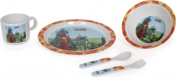 Ez az étkészlet örömet visz minden gyerekszobába. Minőségi műanyagból készült, ami nagy tartósságot és könnyű tisztítást biztosít – mosogatógépben mosható. A gyerekek imádni fogják a kedvelt Rozsdás lovag dizájnt, amely minden étkezést kalanddá varázsol. A készlet tartalma: