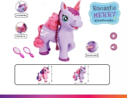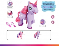 A bájos lila, elemes unikornis örömet szerez a gyerekeknek effektjeivel – a pocakján lévő gomb megnyomására angol dalt énekel, varázslatos hangokat ad ki, és a szarva világít. A csomag része egy fésű és egy tükör a hosszú sörény fésüléséhez.
