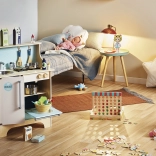 Fa amőba piros és zöld almákkal, ideális otthoni játszáshoz vagy utazásra. Ebben a két személyes játékban az nyer, aki először hoz létre egy sort négy azonos színű almából. 5 éves kortól ajánlott.