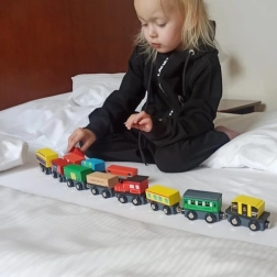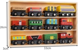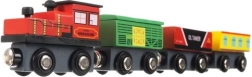 A készlet 3 mozdonyt és 9 különböző színű kocsit tartalmaz, így változatos szórakozást nyújt.