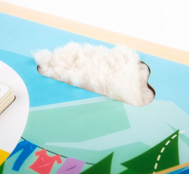 A Bigjigs Toys szenzoros kirakó játékos kempingjelenetet kínál színes illusztrációkkal a lakókocsiról, a sátról és a tábortűzről. A mozgó és tapintható elemeknek köszönhetően a gyerekek gyakorolják az ujjak finommozgását, a koncentrációt és a kéz–szem koordinációt, és természetes módon bővítik szókincsüket azzal, hogy megbeszélik, mit látnak a jeleneten.