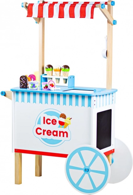 A BIGJIGS TOYS fa fagylaltkocsija színes, finomságokkal teli standdá varázsolja a gyerekszobát. A gyerekek gombócokat tálalhatnak, jégkrémet kínálhatnak, és gyakorolhatják az udvariasságot és a szókincset. A stabil szerkezet, a vonzó dizájn és a gazdag tartozékok hosszú, tartalmas játékra csábítanak.