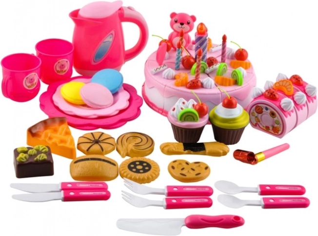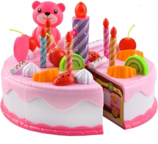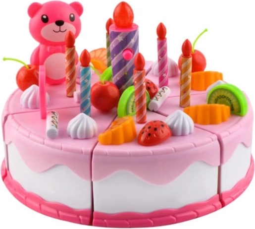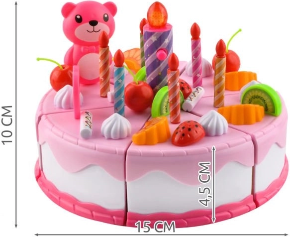 A rózsaszín születésnapi torta 6 darabból áll, amelyek tépőzárral kapcsolódnak össze. A készlet tartalmaz sok kiegészítőt és dekorációt is, amikkel tetszés szerint díszítheted a születésnapi tortát. A kreatív szórakozás sosem ér véget! A kiegészítők cserélhetőek, átrendezhetőek, áthelyezhetőek - alkosd meg saját tökéletes tortádat.