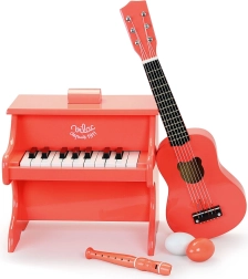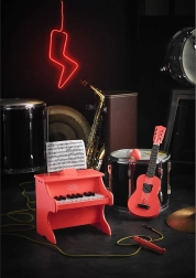 A csomag tartalmaz egy pót húrt és egy pengetőt is, így a gyerekek azonnal „koncertezhetnek” a gyerekszobában. A termék játéknak készült – segít fejleszteni a ritmusérzéket, hallást és finommotorikát, azonban nem valódi hangszer.