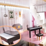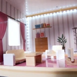 Hideg fehér LED diódák a szobák mennyezetén szépen bevilágítják az egész házat és kiemelik a belső részleteket. Tápellátás: 3× AA (nem tartozék).