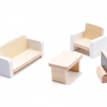 A csomagban 16 darab bútort találsz: asztal, székek, ágy, lámpa, karosszék, kanapé, dohányzóasztal, televízió, zongora, pad, nyugágy, napernyő, zuhany, mosdó és WC.