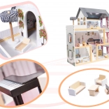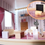 A 78 cm magas, háromszintes babaház hosszú órákon át tartó kreatív játékra készült. A valósághű belső nyomatok, a lépcső és a nyitott kialakítás könnyű hozzáférést biztosít minden helyiséghez. Az integrált LED fénycsík gyönyörűen megvilágítja a szobákat és meghitt hangulatot varázsol játék közben.