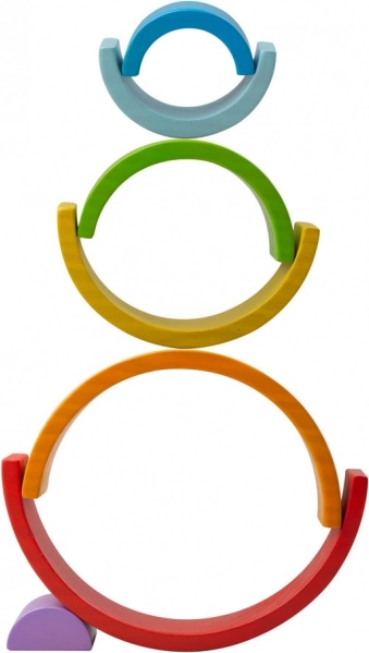 A kis fa BIGJIGS BABY szivárvány ideális első építőjáték 12 hónapos kortól. Hét masszív ív élénk színekben, amelyek rakosgathatók, rétegezhetők, méret szerint sorba rendezhetők, vagy hidakká, alagutakká és egyedi építményekké alakíthatók. A gyerekek természetes módon ismerkednek a színekkel, arányokkal és az egyensúllyal.