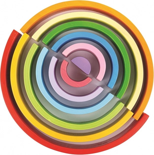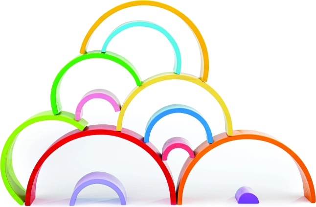 A nagy fa szivárvány időtálló fejlesztőjáték, amely szabályok nélküli, nyitott végű játékra ösztönöz. A gyerekek az íveket egymásra rakhatják, rétegezhetik, összekapcsolhatják és más építőkészletekkel kombinálhatják – a lehetőségek szinte végtelenek. Masszív kivitelének és sima felületének köszönhetően kellemes a fogása, és bírja a mindennapos játékot.