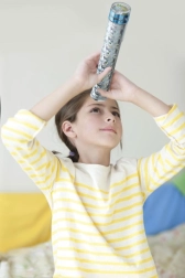 A csomagban mindent megtalálsz egy kb. 25 cm hosszú, működő kaleidoszkóp elkészítéséhez. A cserélhető tölteteknek és díszeknek köszönhetően a gyerekek egyedi mintákat alkothatnak gyöngyökből, flitterekből és színes korongokból. Kiváló a finommotorika, a fantázia és az alapvető optikai elvek fejlesztésére.
