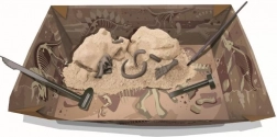 Éld át az igazi ásatás élményét. A gipszblokk a csontváz egyes részeit rejti, amelyeket a gyerekek a mellékelt eszközökkel tárnak fel.