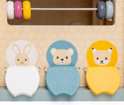 A lágy pasztell színek és a sima kidolgozás újra és újra játékra csábít, miközben a változatos tevékenységek különféle készségeket támogatnak – a finommotorikától a nyelvi fejlődésig. Az FSC tanúsítvány felelős erdőgazdálkodásból származó faanyagot és körültekintő gyártást igazol.