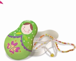 Fedezd fel az alkotás örömét ezzel a kreatív készlettel, amelyben 6 aranyos matrjoskát festhetsz ki. A kész babák egyedi kis dobozkákként is szolgálnak apróságoknak, és dekorációként a gyerekszobába.
