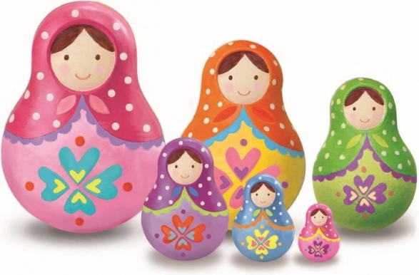 A 6 fa baba mind egymásba illeszkedik, így színes, hagyományos orosz babakészletet hozol létre modern, személyes stílussal. Remek ajándékötlet és közös családi program.