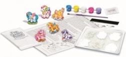 Ebből a kreatív készletből gipsz öntvényeket formázhat és festhet. A termék tartalmaz mindent, ami szükséges a mágnesek vagy brossok elkészítéséhez unikornis formában.