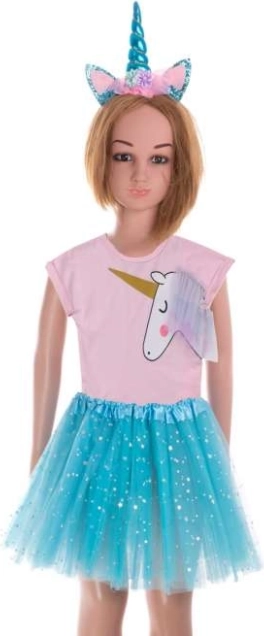 Ez a varázslatos jelmez beragyogja a bálokat és a gyerekek fantáziáját. A balett stílusú tüllszoknya könnyű, fényes, és a rugalmas deréknak köszönhetően könnyen igazodik. A fejpánt puha szarvval és csillogó fülecskékkel díszített – tökéletes kiegészítő kis tündéreknek vagy boszorkányoknak.