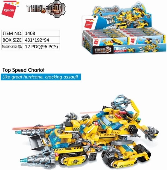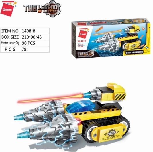 - 8 minikészlet: Spanker teherautó, Hercules daru, Thunder úthenger, Talon markológép, Dragon helikopter, Blade buldózer, Nindzsa robot, Storm ásógép