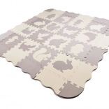 Puha gyerek habkirakós szőnyeg kivehető formákkal, amely biztonságos és kreatív játszóteret teremt. A megemelt széleknek köszönhetően összeállítható egy játékos elkerített rész, amely bent tartja a játékokat. A szőnyeg vízálló, csúszásgátló felületű, és kiválóan ütéscsillapító, ezért ideális az első lépésekhez. A semleges szürke és ekrü színek bármely enteriőrbe illenek.