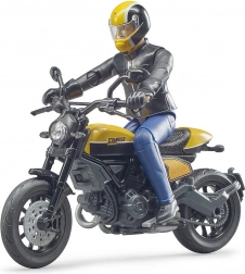 A BRUDER Scrambler DUCATI Cafe Racer részletgazdag motor modellje ideális a kis motorrajongók és a gyűjtők számára is. A valósághű kidolgozást – a látható motorelemektől az ülés formájáig – egy teljesen mozgatható motoros figura egészíti ki, amely természetes vezetési és akciópozíciókat tesz lehetővé.