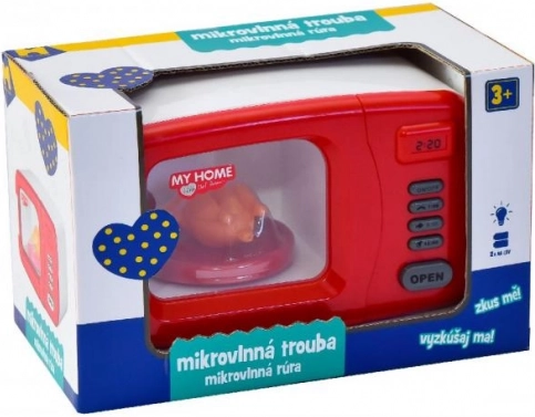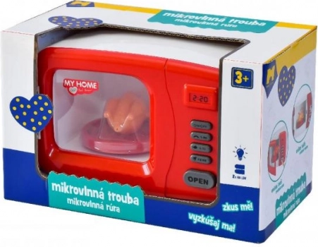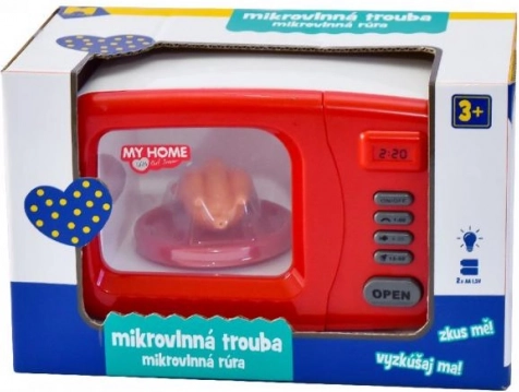 A gyerek mikrohullámú sütő valósághű megjelenéssel bír, elülső ablakkal és gombokkal, amelyek valós mikrohullámú sütőt mintáznak.
