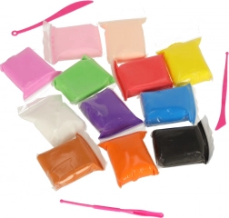 Zestaw tartalmát: 12 színű polimer agyag, 3 szerszám a formázáshoz.
