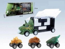 Dínó kamion vontatóval és 3 visszahúzhatós kisautóval
