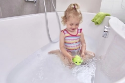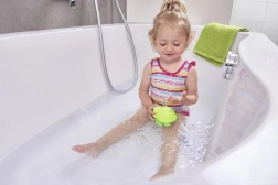 A 11 cm-es kompakt hosszának köszönhetően a legkisebb gyerekkezekben is könnyen tartható. A tartós, sima műanyag könnyen tisztítható, és mindennapos használatra készült a kádban vagy a gyerekmedencében.