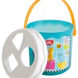 Ez a vidám vödör remek kiegészítő minden gyermek számára, aki szeretné megtanulni a különböző formák és színek felismerését. A három különböző alaknak megfelelő nyílással ellátott fedél játékos módon segíti a tanulást.