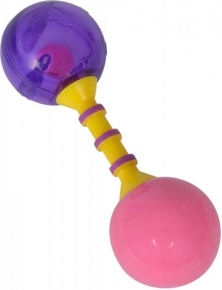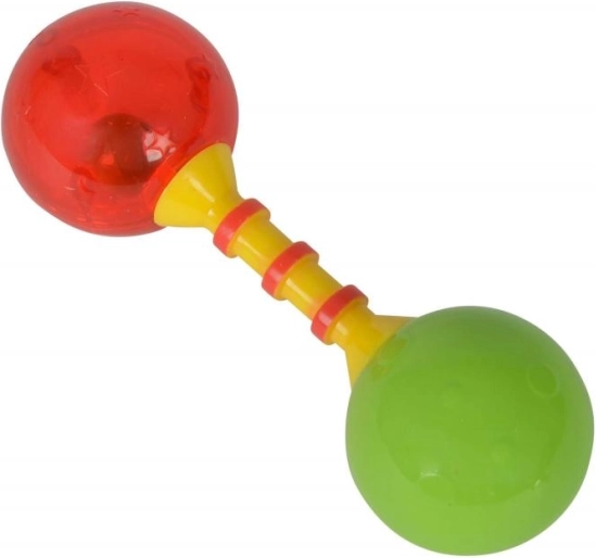 Ez a csörgő stimulálja a gyermek érzékszervi fejlődését élénk színeinek és a rázáskor hallható hangjainak köszönhetően.
