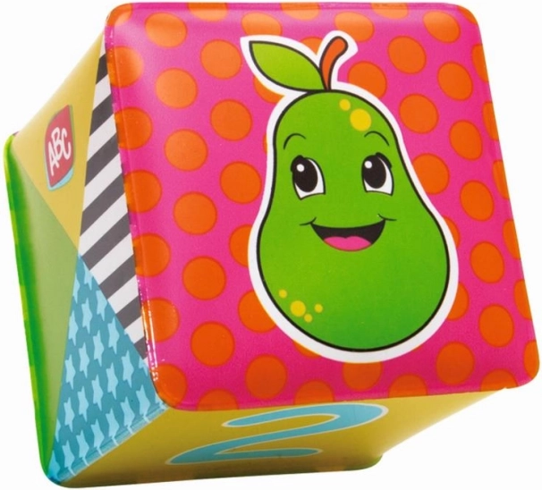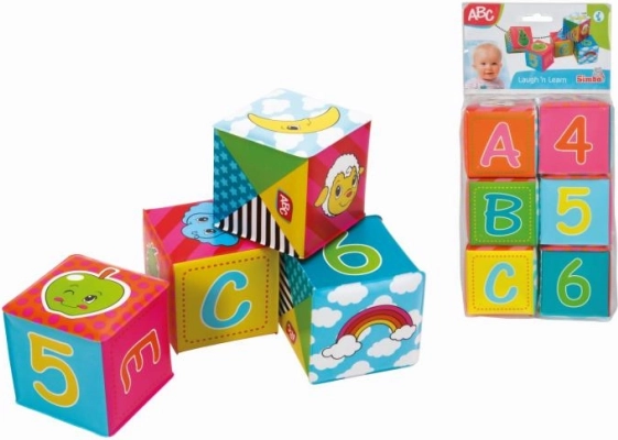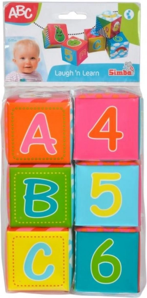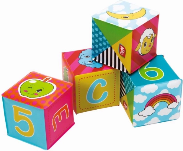 A csomag 6 puha kockát tartalmaz a legkisebbek számára. A kocka mérete 8 × 8 cm. Vidám színek, állatképek, számok és betűk.