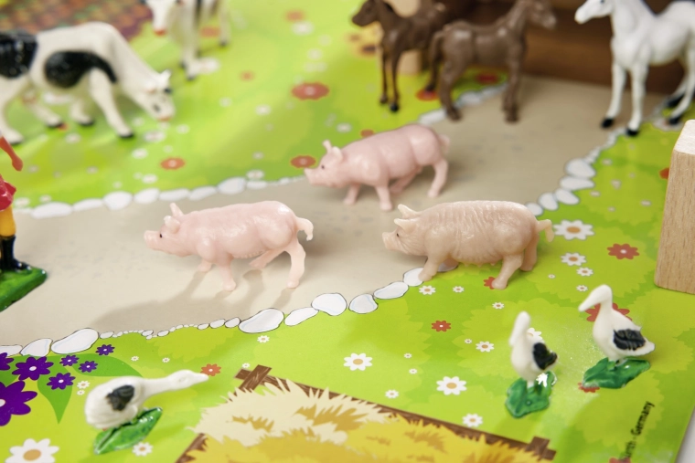 Lovak, tehenek, malackák, ludak és a gondozó serkentik a fantáziát, segítenek az állatfajok felismerésében, és fejlesztik a szociális készségeket a szerepjáték során.
