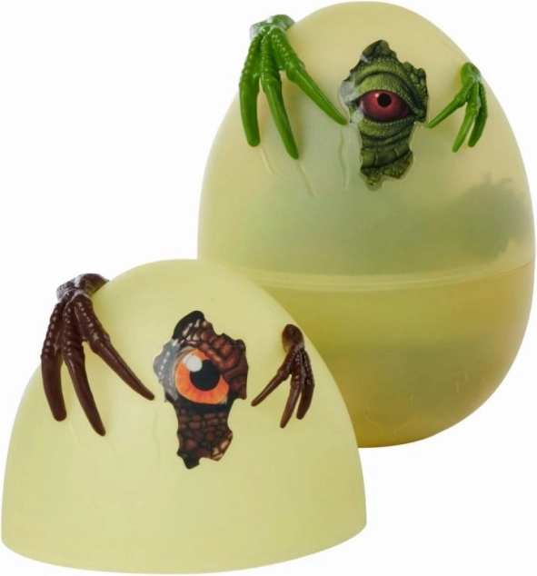 Fedezd fel a meglepetést a nagy dínótojásban, több dinoszaurusz figurával és tematikus kiegészítőkkel. Minden tojás 3 féle dinoszauruszt rejt valósághű részletekkel, ideális a kreatív játékhoz és eredeti húsvéti ajándéknak is. A dinoszauruszszemet és karomnyomokat ábrázoló látványos dizájn minden kis őskor-rajongónak örömet szerez.