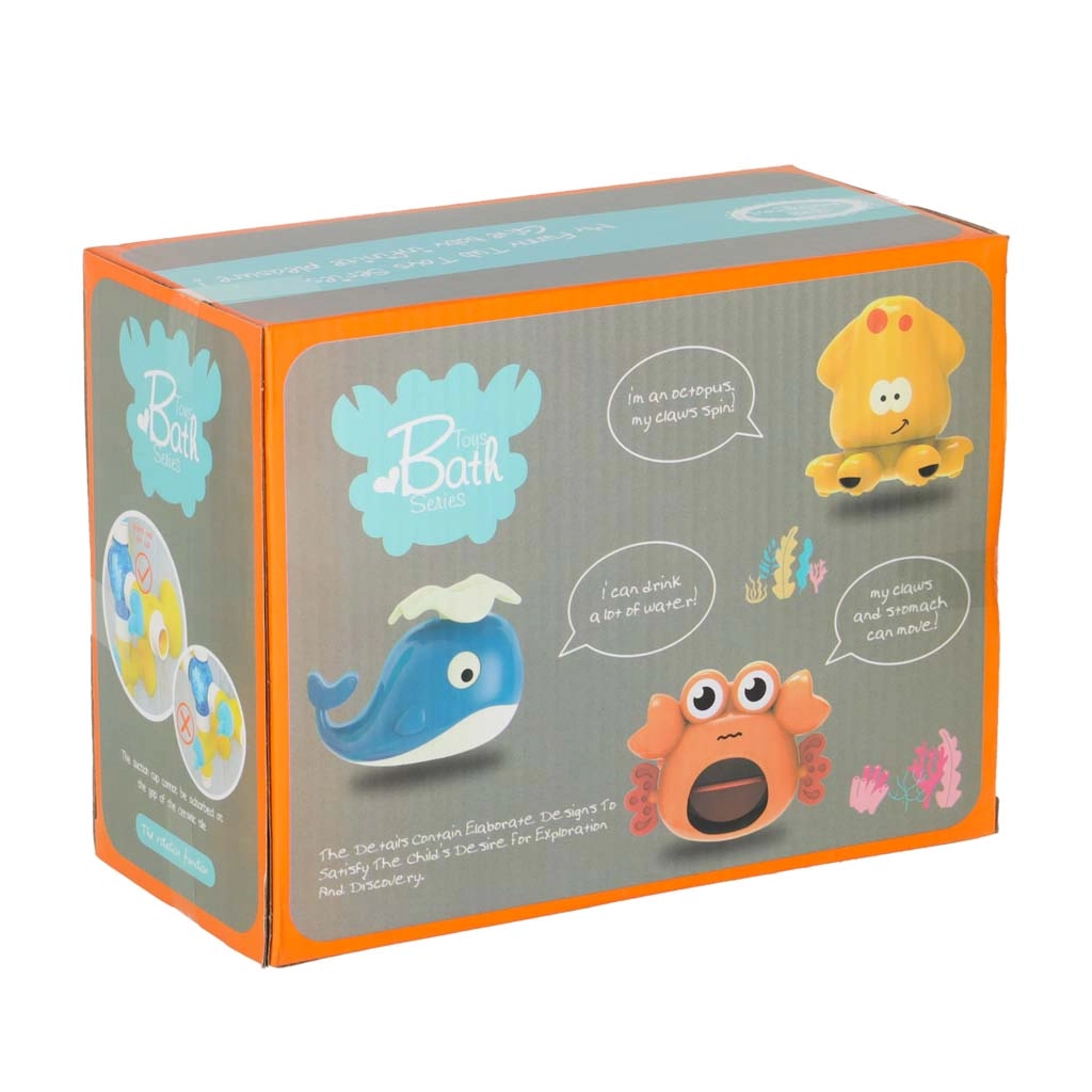 Ez a színes vízi pálya a kádba tölcsérekből, csövekből és vidám kiömlőkből áll, bálna, rák és polip formában. A gyerekek egyszerűen felülről vizet öntenek, és figyelik, ahogy az a rendszeren átfolyik, megforgatja a kerekeket, és különböző nyílásokon szökőkútként vagy vízesésként távozik. A biztonságos anyagok és a lekerekített élek ideálisak a mindennapos vízi játékhoz.
